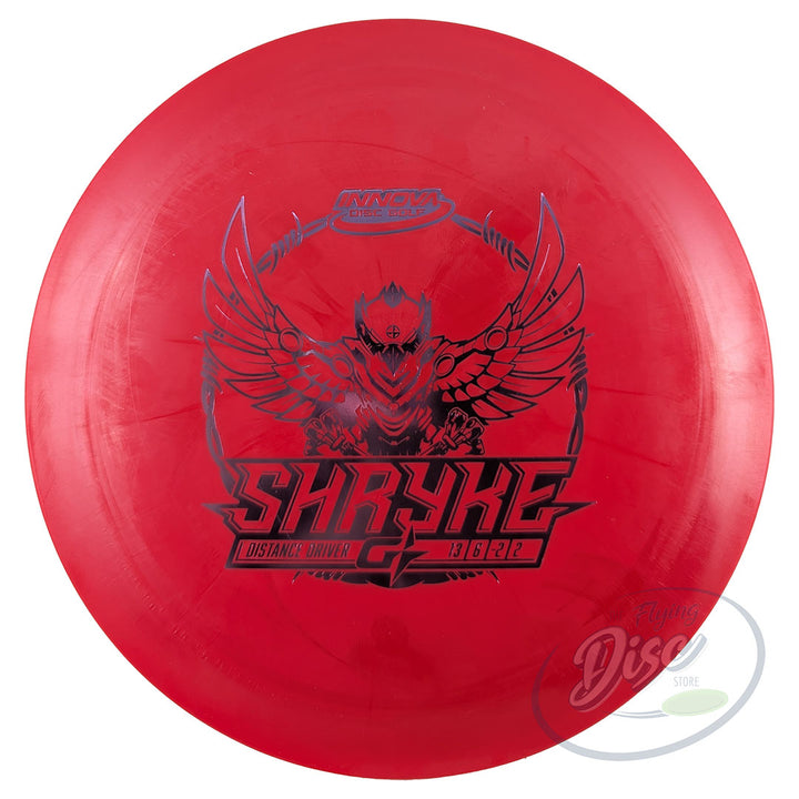 The Innova GStar Shryke is an easy-to-throw, distance driver that works wonderfully for a wide variety of players. A mild high-speed turn will put the Shryke in glide mode, which along with its high, aerodynamic speed, will give it incredible distance. The low-speed fade is mild and manageable, which makes it easy to keep on the fairway. The Innova GStar Shryke is similar to the popular Tern, but faster and more stable for higher speeds.